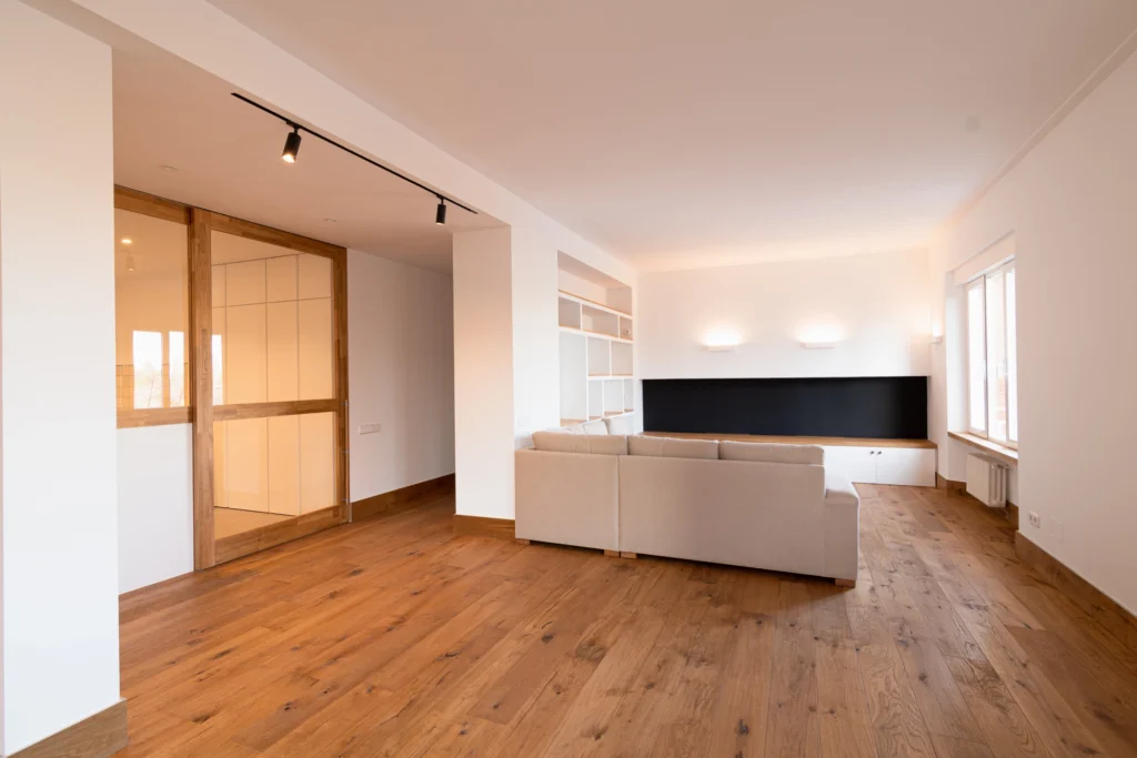La elección de los acabados gira en torno a la elección del roble como elemento principal de la vivienda.