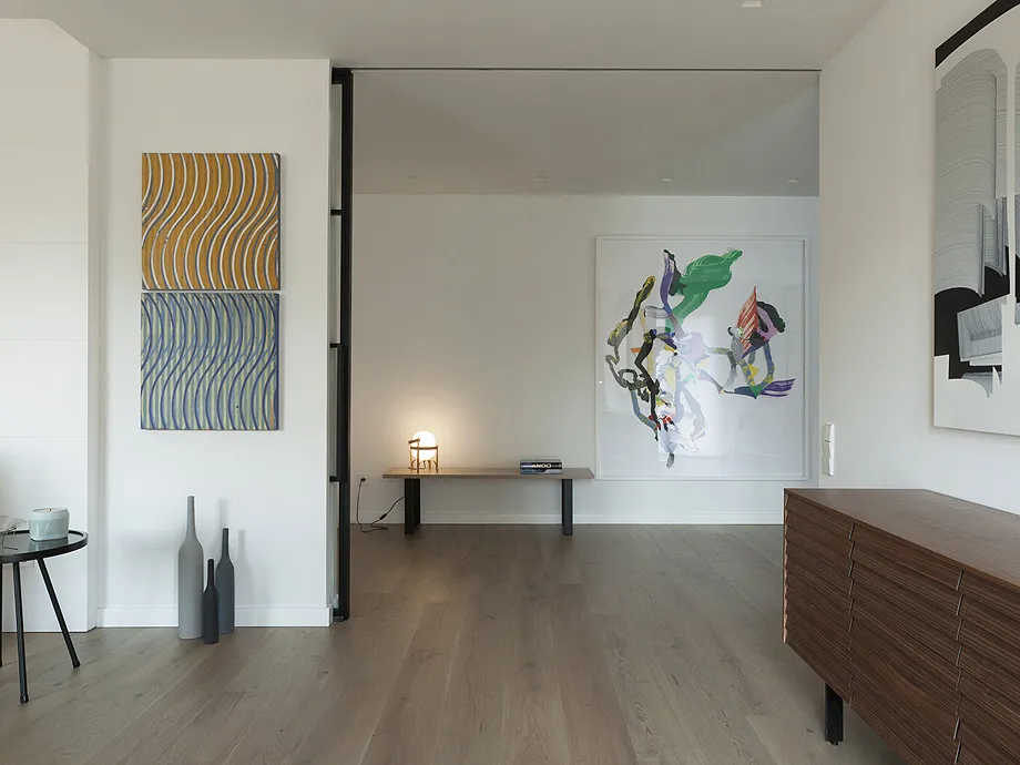 La calidad de los materiales, los detalles constructivos y los acabados aportan la elegancia demandada. El Mobiliario joven y la cocina vista aportan dinamismo.